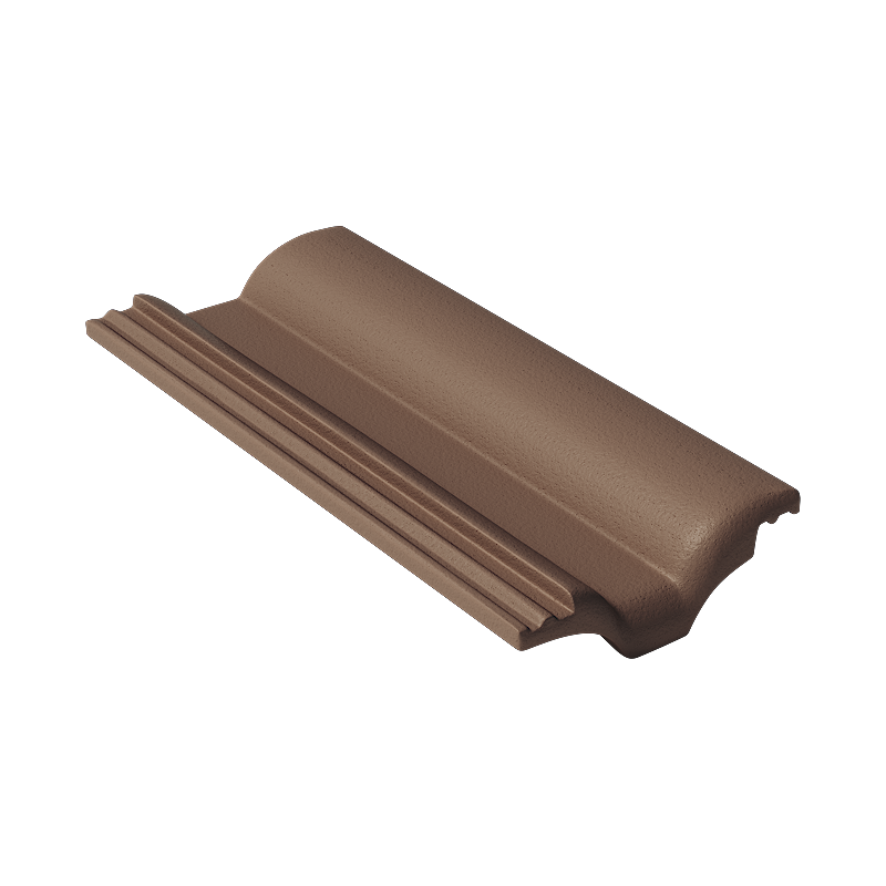 Черепица половинчатая BRAAS Таунус Темно-коричневый — выбор тех, кто хочет создать практичную и долговечную кровлю. Область применения: устройство хребта / ендовы.