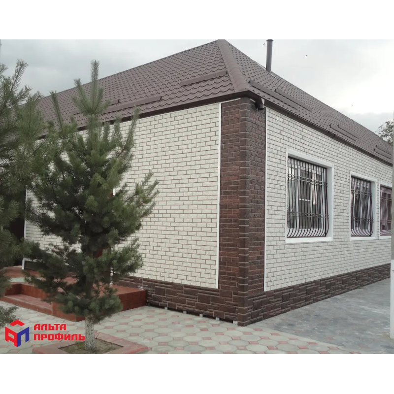 Фасадная панель под жженый камень с комбинацией из набора пластин разной величины коллекции Камень от Альта-Профиль. Панель изготовлена из полипропилена методом литья под давлением, имеет небольшой вес, поэтому не создает дополнительной нагрузки на несущие конструкции. Материал устойчив к грибку, плесени и коррозии. За счет ребер жесткости и увеличенной толщины (23 мм), панели устойчивы к механическим и температурным воздействиям, не деформируются. Многослойное окрашивание надежно защищает от УФ-лучей, обеспечивая сохранность цвета долгие годы.