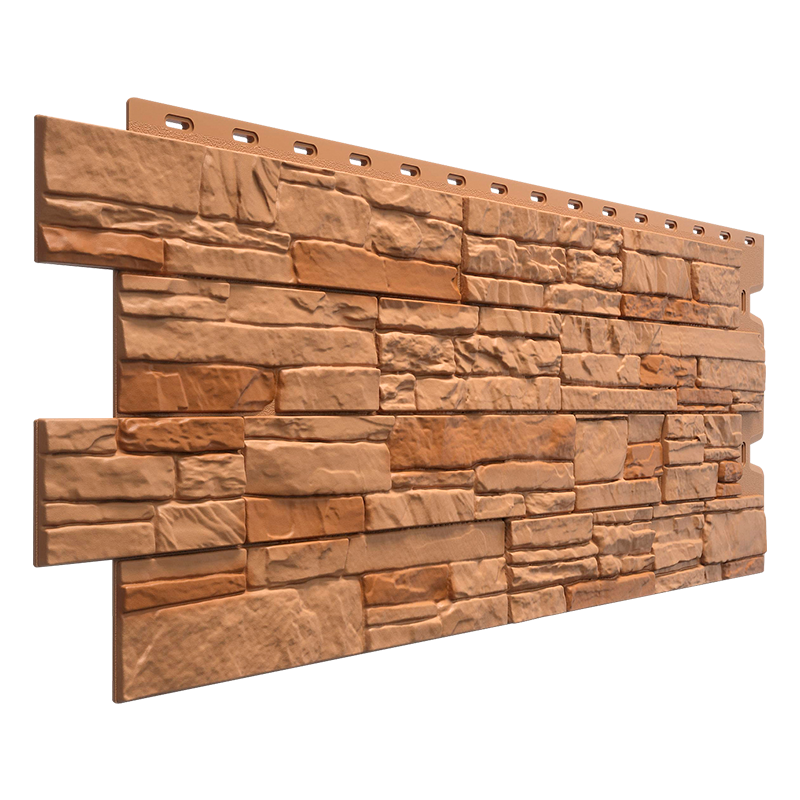 Фасадная панель с текстурой слоистого песчаника и имитацией натуральной каменной кладки из коллекции STEIN от Деке. Панель изготовлена из полипропилена методом литья под давлением, имеет небольшой вес, поэтому не создает дополнительной нагрузки на несущие конструкции. За счет специальной трехступенчатой системы окраски, материал невосприимчив к УФ-лучам и атмосферным осадкам. Конструкция панели усилена ребрами жесткости, что обеспечивает повышенную устойчивость к механическим нагрузкам. Панели легко и надежно скрепляются между собой, монтируются на обрешетку. Монтаж можно производить в любое время года, за исключением сильных морозов (не ниже -15°С)