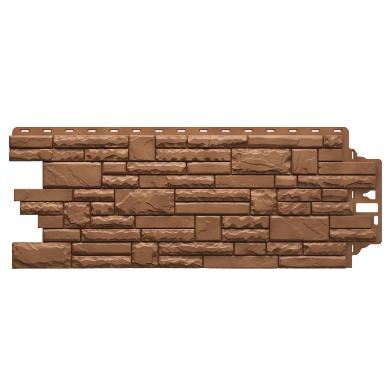 Фасадная панель в фактуре колотого слоистого песчаника с переливающейся текстурой поверхности из коллекции STERN от Деке. Камни разного размера придают панелям максимальное соответствие натуральной каменной кладке. Панель изготовлена из полипропилена методом литья под давлением, имеет небольшой вес, поэтому не создает дополнительной нагрузки на несущие конструкции. За счет специальной трехступенчатой системы окраски, материал невосприимчив к УФ-лучам и атмосферным осадкам. Конструкция панели усилена ребрами жесткости, что обеспечивает повышенную устойчивость к механическим нагрузкам. Панели легко и надежно скрепляются между собой, монтируются на обрешетку. Монтаж можно производить в любое время года, за исключением сильных морозов (не ниже -15°С)
