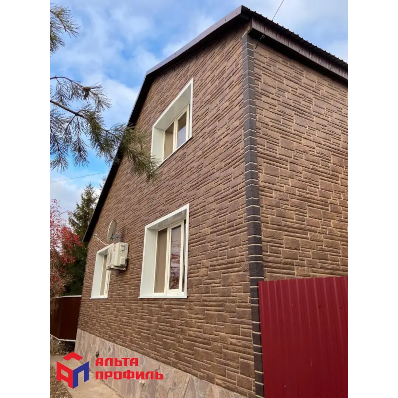 Фасадная панель под камень с комбинацией из набора пластин разной величины коллекции Камень от Альта-Профиль. Панель изготовлена из полипропилена методом литья под давлением, имеет небольшой вес, поэтому не создает дополнительной нагрузки на несущие конструкции. Материал устойчив к грибку, плесени и коррозии. За счет ребер жесткости и увеличенной толщины (23 мм), панели устойчивы к механическим и температурным воздействиям, не деформируются. Многослойное окрашивание надежно защищает от УФ-лучей, обеспечивая сохранность цвета долгие годы.