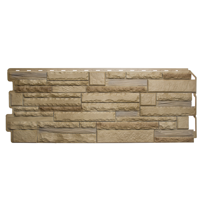 Панель изготовлена из полипропилена методом литья под давлением, имеет небольшой вес, поэтому не создает дополнительной нагрузки на несущие конструкции. Материал устойчив к грибку, плесени и коррозии. За счет ребер жесткости и увеличенной толщины (23 мм), панели устойчивы к механическим и температурным воздействиям, не деформируются. Многослойное окрашивание позволяет добиться неравномерного оттенка, подчеркивая природную текстуру натурального камня, надежно защищает от УФ-лучей, обеспечивая сохранность цвета долгие годы.