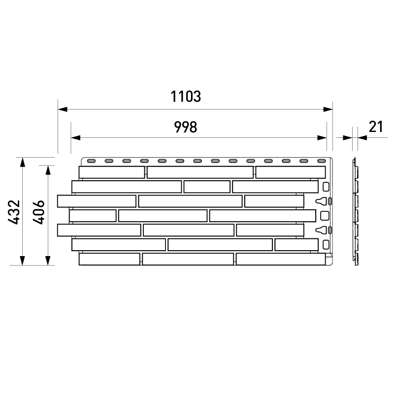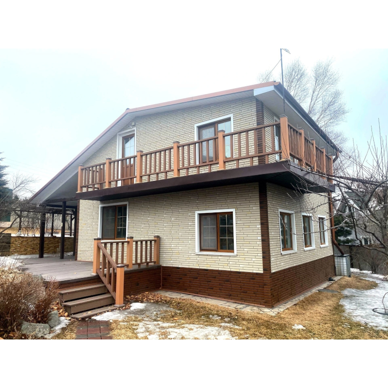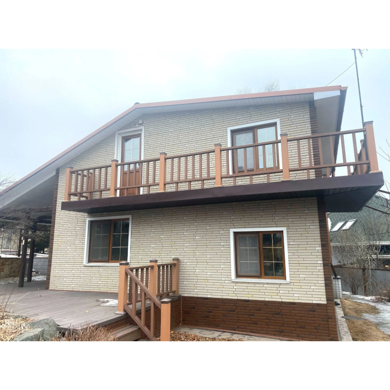Фасадная панель с имитацией кладки узкого клинкерного ригельного кирпича из коллекции KLINKER от Деке. Цветовые акценты и контрастные швы придают панелям особую выразительность и неординарный внешний вид. Панель изготовлена из полипропилена методом литья под давлением, имеет небольшой вес, поэтому не создает дополнительной нагрузки на несущие конструкции. За счет специальной трехступенчатой системы окраски, материал невосприимчив к УФ-лучам и атмосферным осадкам. Конструкция панели усилена ребрами жесткости, что обеспечивает повышенную устойчивость к механическим нагрузкам. Панели легко и надежно скрепляются между собой, монтируются на обрешетку. Монтаж можно производить в любое время года, за исключением сильных морозов (не ниже -15°С) Фасадные панели могут использоваться как для оформления фасада целиком, так и для облицовки фундамента, выделения отдельных деталей. Фасадные панели под кирпич KLINKER от Docke — это практичное и стильное решение с гарантией производителя 50 лет! Предлагаем также все необходимые комплектующие для панелей Деке, которые придадут законченный внешний облик и дополнительный шарм фасаду. Купить фасадную панель под клинкерный ригельный кирпич KLINKER Сахара от производителя Деке недорого вы можете в нашем интернет-магазине Удачная покупка. Наши опытные менеджеры рассчитают необходимое количество материала и помогут с выбором комплектующих.