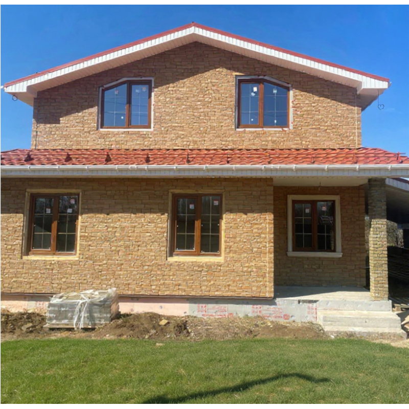 Фасадная панель с текстурой слоистого песчаника и имитацией натуральной каменной кладки из коллекции STEIN от Деке. Панель изготовлена из полипропилена методом литья под давлением, имеет небольшой вес, поэтому не создает дополнительной нагрузки на несущие конструкции. За счет специальной трехступенчатой системы окраски, материал невосприимчив к УФ-лучам и атмосферным осадкам. Конструкция панели усилена ребрами жесткости, что обеспечивает повышенную устойчивость к механическим нагрузкам. Панели легко и надежно скрепляются между собой, монтируются на обрешетку. Монтаж можно производить в любое время года, за исключением сильных морозов (не ниже -15°С)