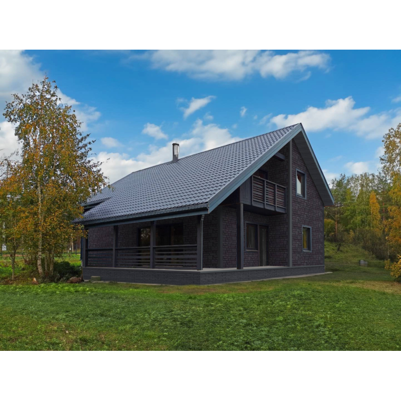 Фасадные панели могут использоваться как для оформления фасада целиком, так и для облицовки фундамента, выделения отдельных деталей.