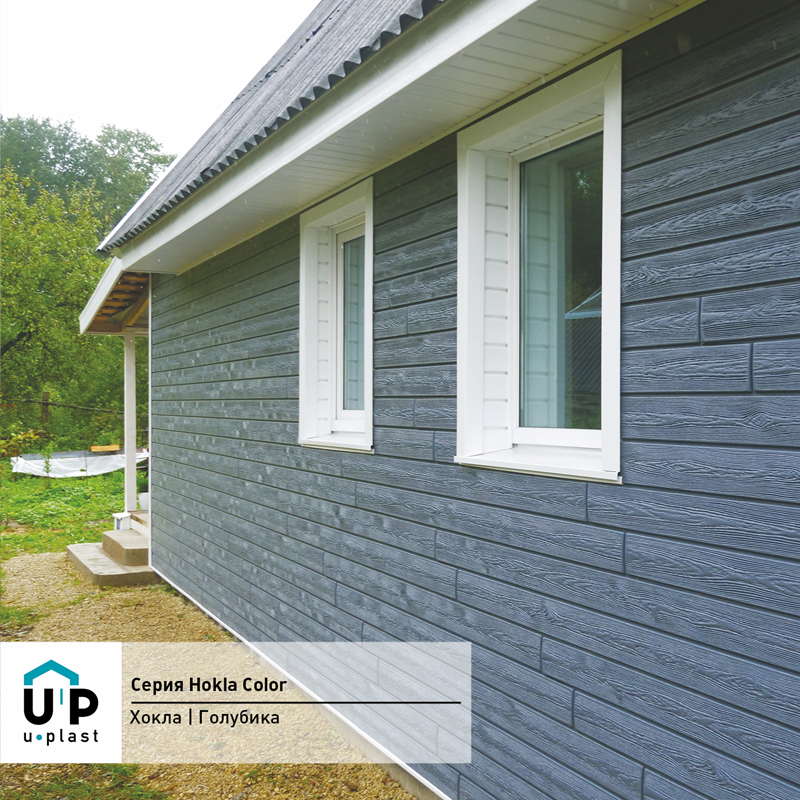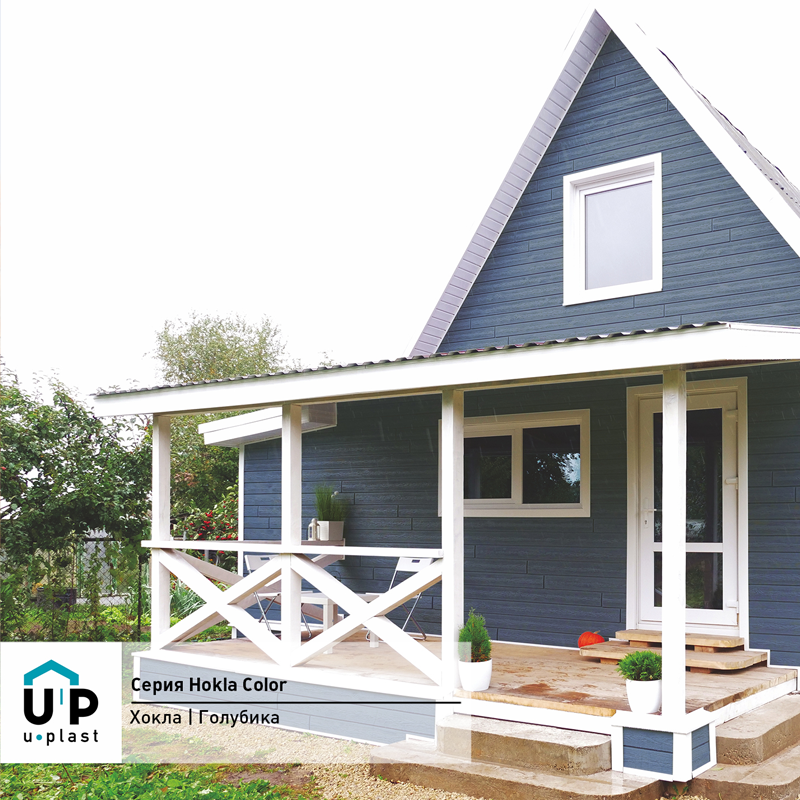Фасадная панель Ю-Пласт Hokla Колор Голубика — оптимальное сочетание надежности и эстетичного вида. Материал точно имитирует вид натурального дерева: дом будет выглядеть респектабельно, при этом отделка не вызовет сложностей и прослужит долго без особых усилий с вашей стороны.