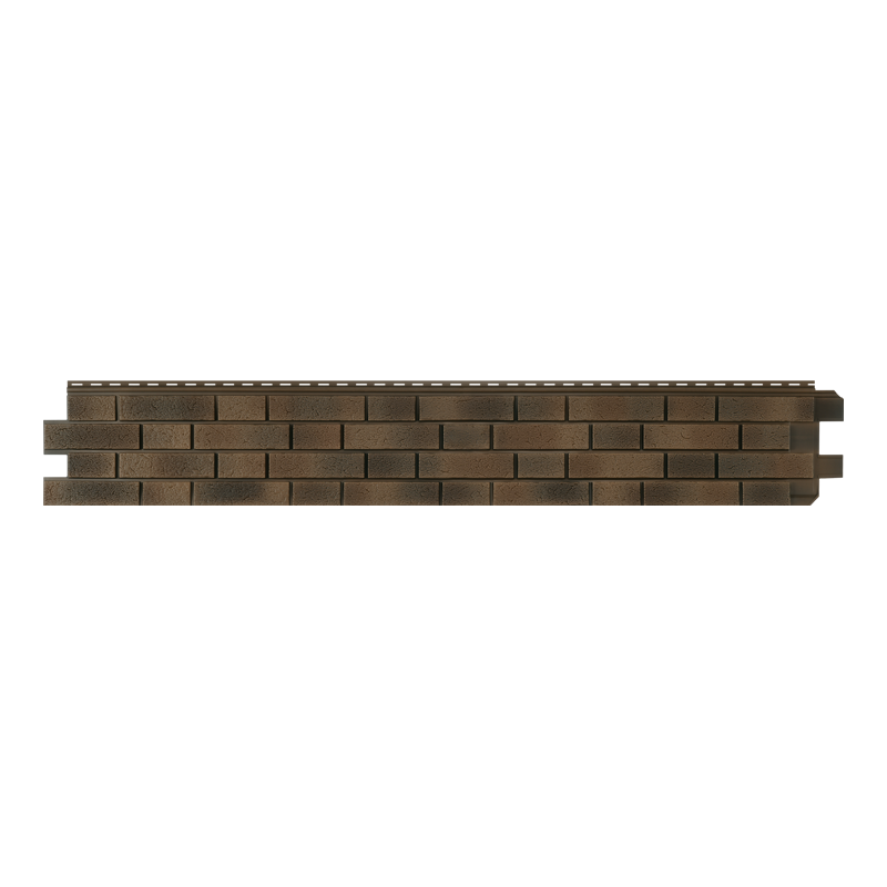 Панель для отделки фасада нового поколения с замком S-Lock коллекции Клинкер Нордик отличается простотой монтажа, эстетикой и долговечностью. Ярко выраженная фактура клинкерного кирпича в сочетании с четкой геометрией швов и «кирпичиками» разного размера придаст объем фасаду. Цвет Лава — коричневый фон с бежево-коричневыми переливами выглядит современно и необычно. Панель длиной 1950 мм с рабочей высотой 262 мм весит всего 1,4 кг. и не потребует устройства усиленной обрешетки.