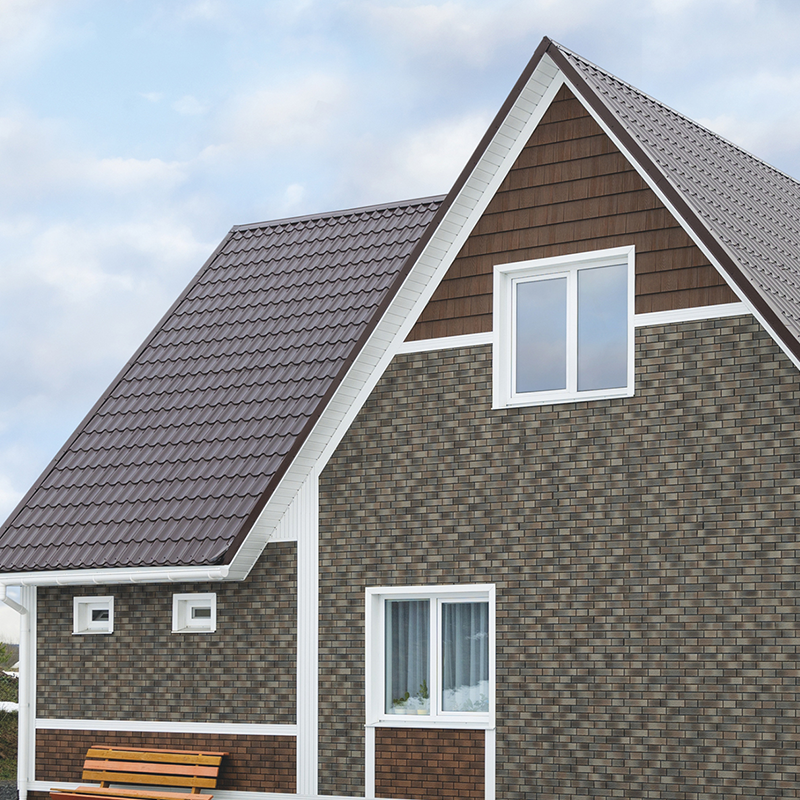 Панель для отделки фасада нового поколения с замком S-Lock коллекции Клинкер Нордик отличается простотой монтажа, эстетикой и долговечностью. Ярко выраженная фактура клинкерного кирпича в сочетании с четкой геометрией швов и «кирпичиками» разного размера придаст объем фасаду. Цвет Пепел — серо-коричневый с переливом в светлый — может сочетаться с самыми разными вариантами отделки соседних элементов. Панель длиной 1950 мм с рабочей высотой 262 мм весит всего 1,4 кг. и не потребует устройства усиленной обрешетки.