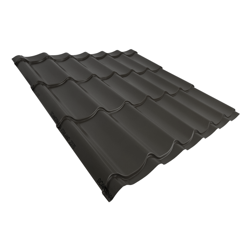 Металлочерепица Scandinavia (Скандинавия) с глянцевым покрытием Полиэстер, толщиной стали 0,5 мм. Производится из оцинкованной стали оптимальной толщины, достаточной для качественного профилирования. Слой цинка обеспечивает надежную защиту металлочерепицы от образования ржавчины и коррозии. Экономичное и универсальное покрытие Полиэстер толщиной 25 мкм устойчиво к перепадам температур и подходит для любых климатических зон. Обладает хорошей стойкостью цвета. Хорошо зарекомендовало себя благодаря своим характеристикам и невысокой стоимости. Популярный профиль в форме бегущей волны является классикой и идеально гармонирует с любым архитектурным стилем дома. Металлическая черепица Scandinavia выпускается в нескольких вариантах, с длиной листа 470, 1170, 2220 и 3620 мм. Удобные размеры позволяют использовать металлочерепицу на кровлях любой площади и конфигурации, сокращают количество обрезков кровельного материала, а также ускоряют и упрощают монтаж. Металлочерепица Скандинавия представлена в наиболее распространенных цветах, используемые для кровли. Оттенки из палитры RR отличаются природным скандинавским спокойствием. Коричневая крыша — классическое и универсальное цветовое решение. Кровля в цвете RR32 Темно-коричневый сочетается со всеми пастельными оттенками фасадных материалов. Такой цвет кровли лучше всего подойдет консерваторам, создаст ощущение спокойствия и защищенности. Купить металлочерепицу Скандинавия 0,5 мм Полиэстер в цвете RR32 с длиной листа 2220 мм по выгодной цене вы можете в нашем интернет-магазине Удачная покупка. Наши менеджеры произведут расчет кровельного материала и необходимых комплектующих.