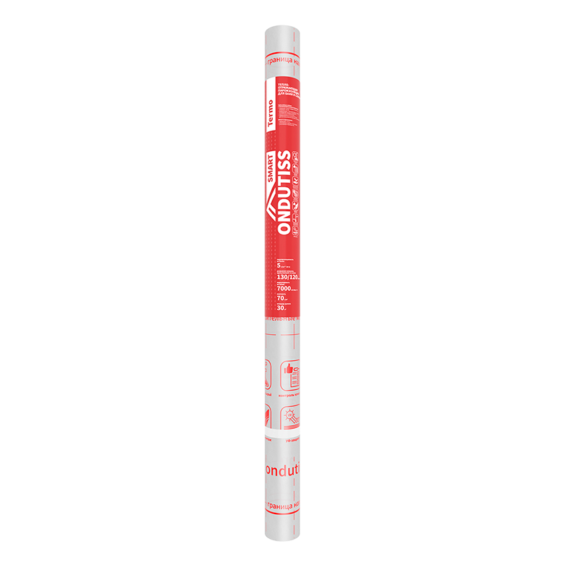 Специальная трехслойная отражающая пароизоляция для бани и сауны. Имеет металлизированное покрытие, температура применения –40…+120 °С без выделения вредных веществ при нагреве. В отличие от других пленок Ondutiss SMART не имеет интегрированной монтажной ленты. Близкий аналог — Ondutiss R Termo (до 2023 г.)