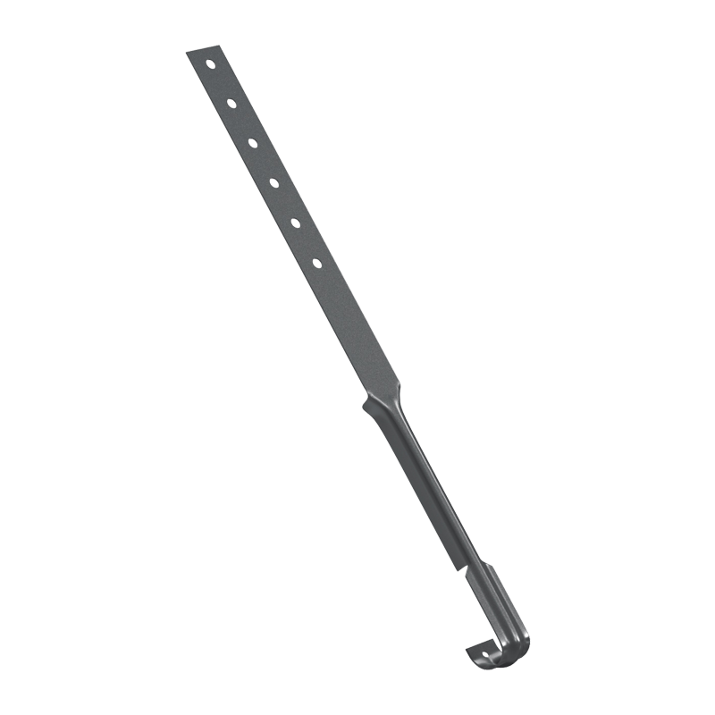 – Конструкция кронштейна желоба исключает смещение желоба под нагрузкой, существенно увеличивает прочность водосточной системы.