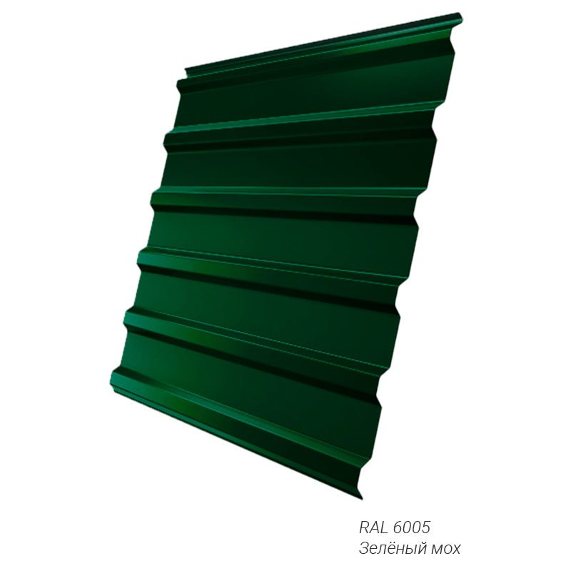 Профнастил имеет профиль C20R (высотой 20 мм). Толщина стали составляет 0,5 мм. Колеровка — заказная. Можно подобрать идеальный цвет для любого проекта.
