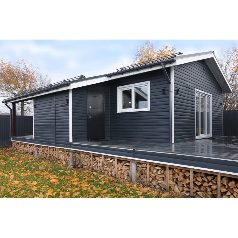 Ирина СНТ Осинка 13.12.2021 Запланировала зашить фронтоны дома в насыщенном, ярком цвете. В магазине посоветовали сайдинг графит в сочетании с белыми комплектующими. Обрадовало, что у Гранд Лайна этот сайдинг акриловый. Значит долго будет держать цвет. Получилось очень красиво. Спасибо за совет! )))