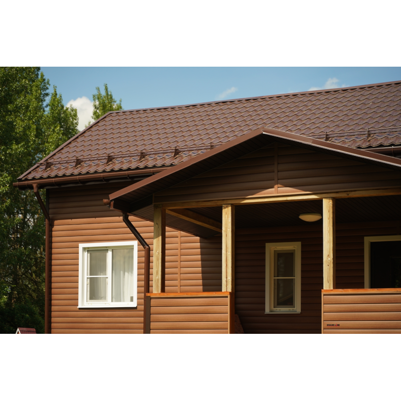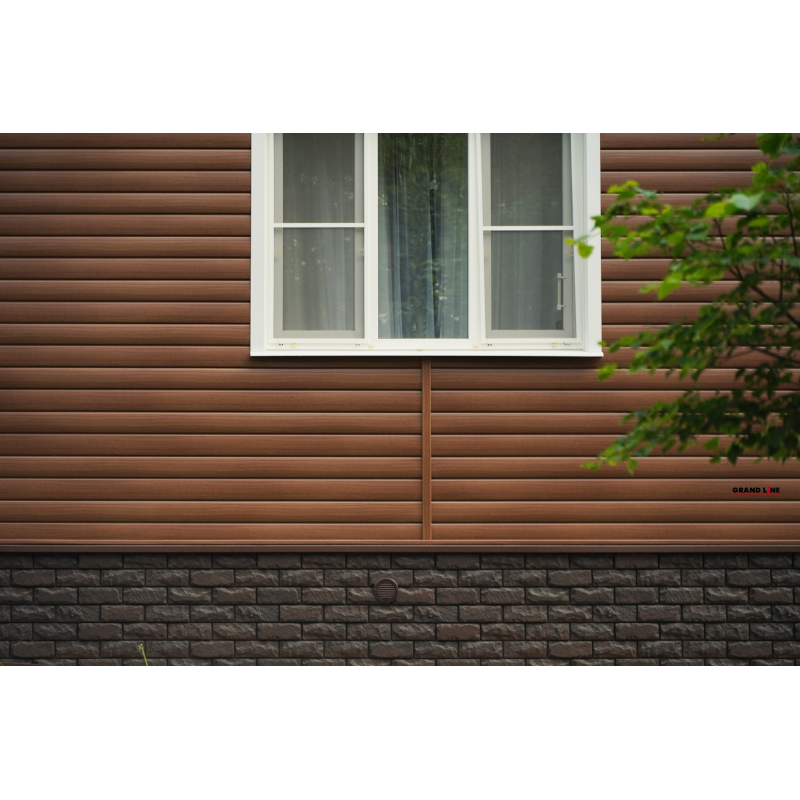 Виниловый сайдинг под брус дизайнерской серии Tundra от Гранд Лайн, длиной 3 м, цвет Рябина.