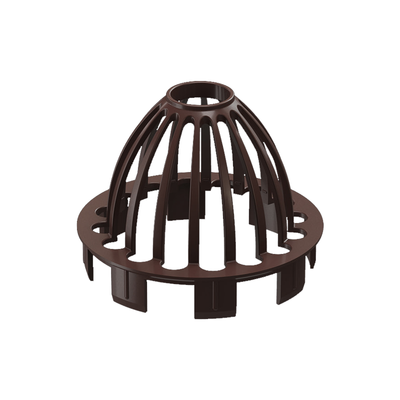 Защитная сетка для водостока серии PREMIUM цвета Шоколад от производителя Docke. Устанавливается в воронку, предотвращает попадание мусора в водосточную трубу.