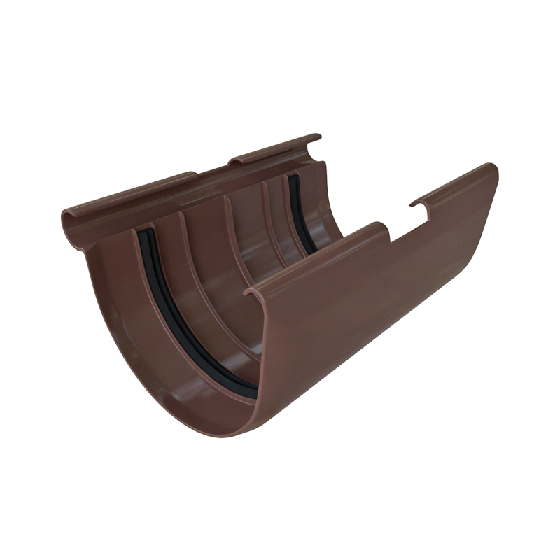 Соединитель желоба ПВХ D125 мм коричневый серии Элит от Альта-Профиль. Устанавливается в местах соединения водосточных желобов, герметизирует стыки и придает дополнительную прочность водостоку.