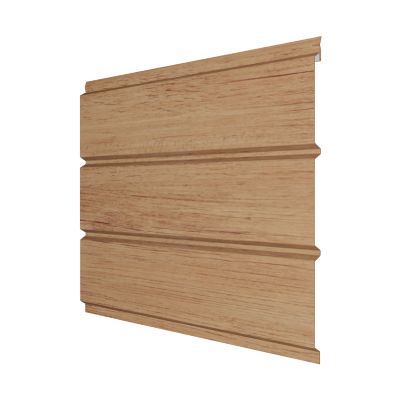Металлический сплошной софит с покрытием Printech от Аквасистем, толщиной стали 0,5 мм, цвет LOG Старый дуб. Длина панели софита 2,4 м. Софиты предназначены для декоративной отделки свесов кровли, фронтонов, потолков открытых террас, беседок, веранд, крылец. Сплошные софиты (без перфорации) подходят для подшивки фронтонных свесов, а также могут применяться для обшивки всего фасада. Для обеспечения максимально удобных условий эксплуатации, при монтаже сочетают перфорированные и частично перфорированные софиты. Система софитов из оцинкованной стали AquaSystem: • 3 типа профилей: с полной перфорацией, с центральной перфорацией, сплошной (без перфорации) • 4 покрытия: Printech (под дерево), Полиэстер (глянцевое), GreenCoat Pural BT(глянцевое), GreenCoat Pural Matt BT(матовое) • 2 вида поверхности: гладкая и фактурная (имитирующая дерево) Полимерное покрытие Printech с рисунком имитирующим древесину толщиной 30 мкм с защитным слоем цинка (120 гр\м2) производится по уникальной технологии, методом запекания под высокой температурой в специальной камере. Покрытие Printech очень стойкое и практически не выгорает под воздействием ультрафиолета. Гарантированный срок эксплуатации металлических софитов Аквасистем с покрытием Printech - 30 лет. Преимущества металлических софитов: — Пожароустойчивы — Высокая устойчивость к деформациям — Выдерживают существенные перепады температур — Большой выбор цветов и покрытий — Длительный срок службы, Купить металлический софит без перфорации под дерево Аквасистем Printech Старый дуб по доступной цене вы можете в нашем интернет-магазине Удачная покупка. Наши менеджеры рассчитают необходимое количество материала и помогут с выбором комплектующих.