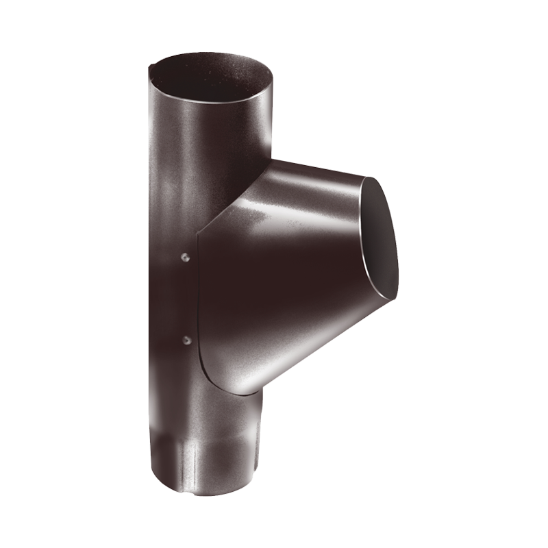 Тройник трубы D100 мм коричневый RAL8017 с покрытием Granite Double от Гранд Лайн. Применяется для соединения двух водосточных труб в один общий сток.