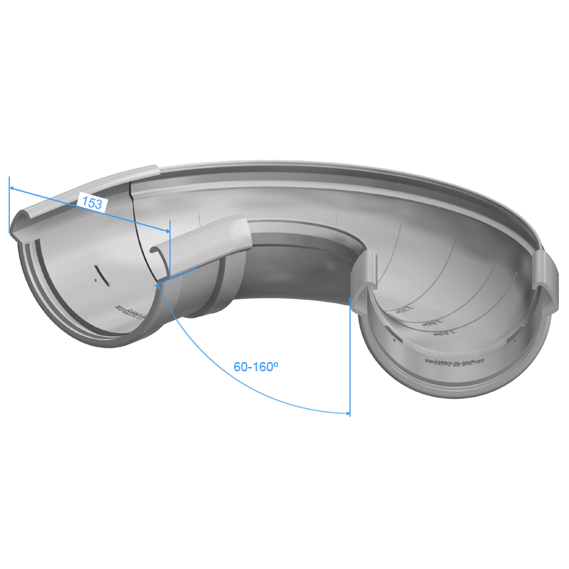 Угол желоба регулируемый 60° – 160° Docke LUX D141 Пломбир RAL9003