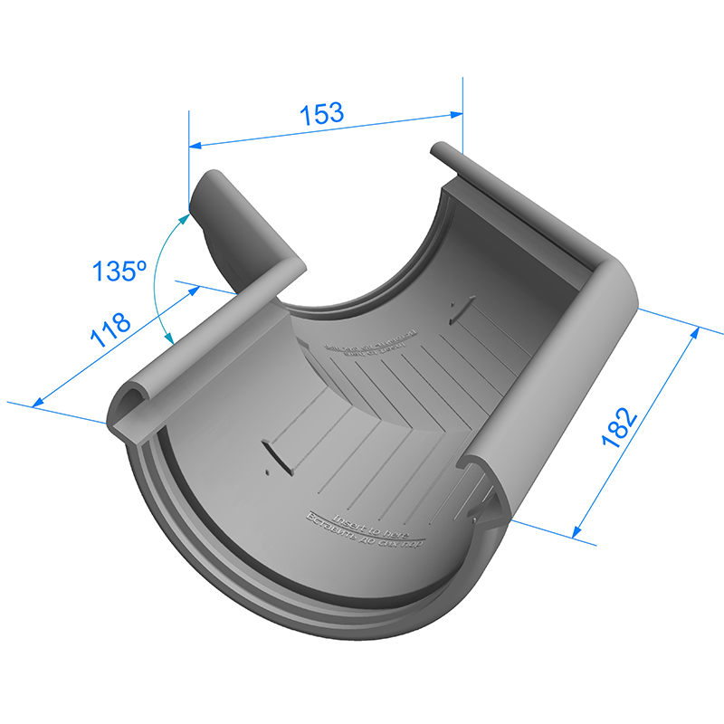 Угол желоба универсальный 135° D141 мм цвета Графит серии LUX от производителя Docke. Предназначен для соединения водосточных желобов под углом 135 градусов, для смены направления движения воды в стоке. Обеспечивает непрерывность линии водостока. Устанавливается на внутренних и наружных углах здания.