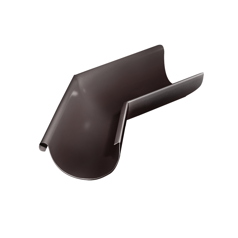 Угол желоба внешний D150 мм 135° коричневый RAL8017 с покрытием Granite Double от Гранд Лайн. Предназначен для соединения водосточных желобов под углом 135 градусов, для смены направления движения воды в стоке. Обеспечивает непрерывность линии водостока. Устанавливается на наружных/выступающих углах здания. Металлический водосток круглого сечения D150/100 с покрытием Granite Double от Гранд Лайн. Водосточная система Гранд Лайн D150/100 обладает большой пропускной способностью и подходит для кровель большой площади. Достаточно одной воронки на 15 п.м. карниза, что позволяет существенно сократить расходы на трубы и колена. Водосточная система изготовлена из холоднокатаной горячеоцинкованной стали толщиной от 0,5 мм и произведена по ведущим европейским технологиям. Все элементы водостока имеют покрытие на основе полиуретана с внешней и внутренней стороны, что значительно повышает долговечность системы. Покрытие Granite отличается повышенной стойкостью к УФ-лучам, агрессивным химическим веществам, механическим повреждениям и коррозии, превосходит по своим параметрам покрытия из полиэстера и пластизола. Водосток обладает высокой цветостойкостью, не выгорает. Устойчив к большим температурным перепадам ( -60 до +120°C). Водосток Гранд Лайн служит для организации стока осадков с поверхности кровли и отвода их на грунт или систему ливневой канализации. При организованном стоке воды сохраняется привлекательный вид фасада, а фундамент защищен от преждевременного разрушения. Купить угол желоба внешний D150 мм 135° коричневый RAL8017 с покрытием Granite Double от производителя Гранд Лайн по доступной цене вы можете в нашем интернет-магазине Удачная покупка. Наши менеджеры помогут с выбором и рассчитают необходимое количество элементов водостока.