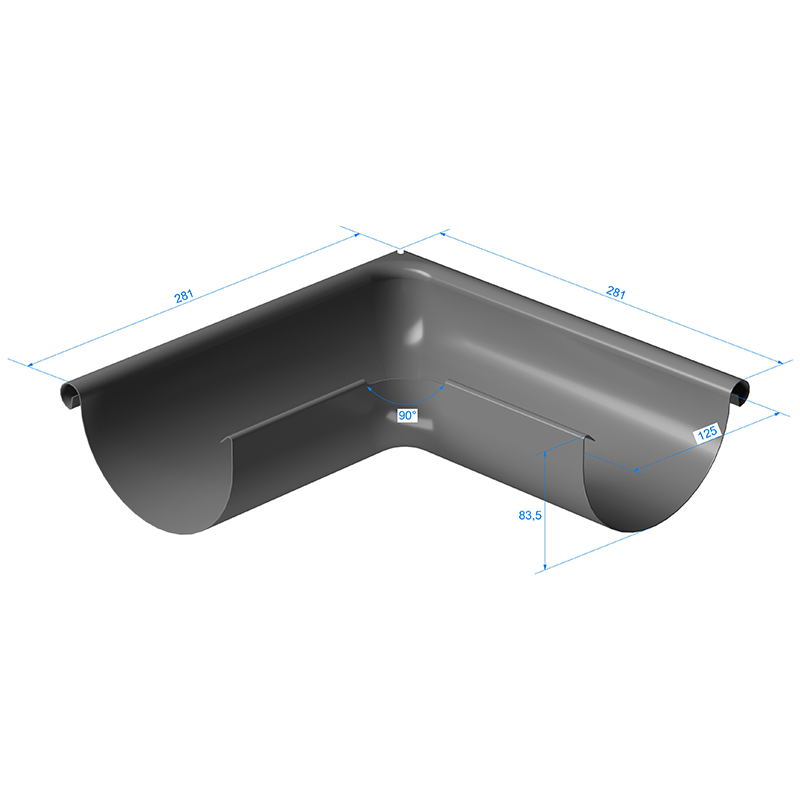Угол желоба внешний 90° Docke STAL PREMIUM D125 RAL8019 Шоколад