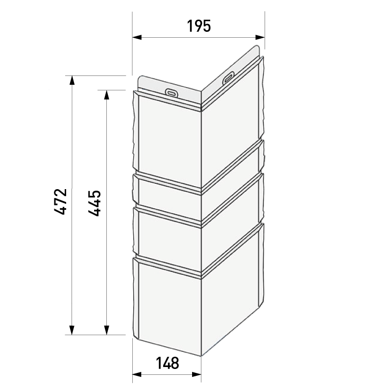 Внешний угол для фасадной панели под камень с имитацией юрского мрамора Docke BURG длиной 445 мм. Предназначен для оформления наружных углов и отдельных архитектурных элементов фасада. Скрывает места угловых стыков фасадных панелей, защищает от проникновения влаги. Производятся углы из полипропилена и идентичны по структуре и цвету фасадным панелям Docke BURG.