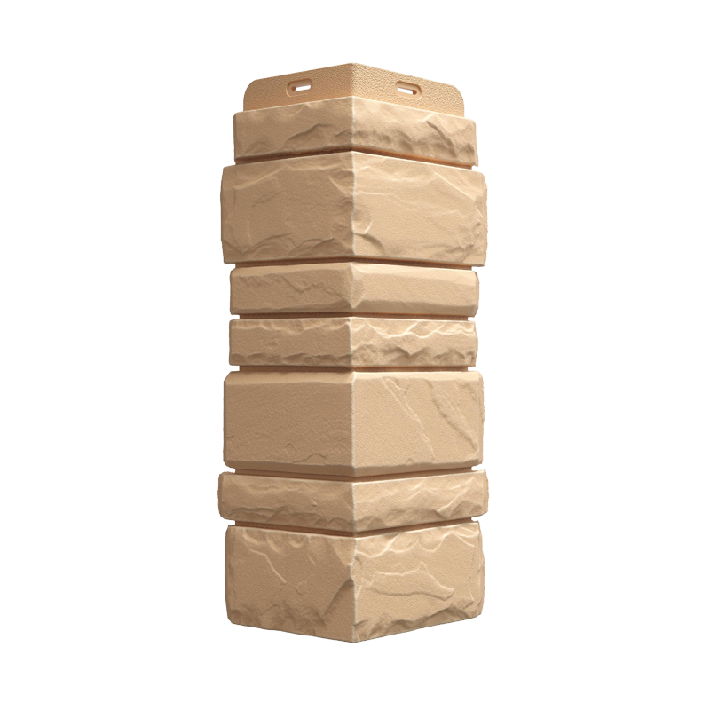 Внешний угол для фасадной панели под колотый слоистый песчаник с переливающейся текстурой поверхности Docke STERN длиной 427 мм. Предназначен для оформления наружных углов и отдельных архитектурных элементов фасада. Скрывает места угловых стыков фасадных панелей, защищает от проникновения влаги. Производятся углы из полипропилена и идентичны по структуре и цвету фасадным панелям Docke STERN.