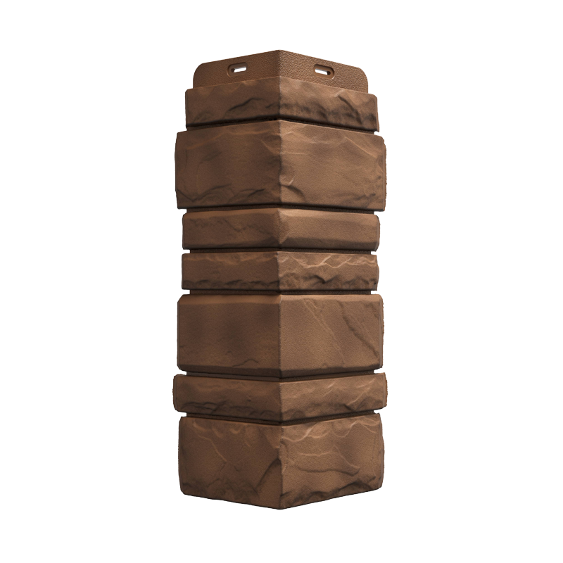 Внешний угол для фасадной панели под колотый слоистый песчаник с переливающейся текстурой поверхности Docke STERN длиной 427 мм. Предназначен для оформления наружных углов и отдельных архитектурных элементов фасада. Скрывает места угловых стыков фасадных панелей, защищает от проникновения влаги. Производятся углы из полипропилена и идентичны по структуре и цвету фасадным панелям Docke STERN.