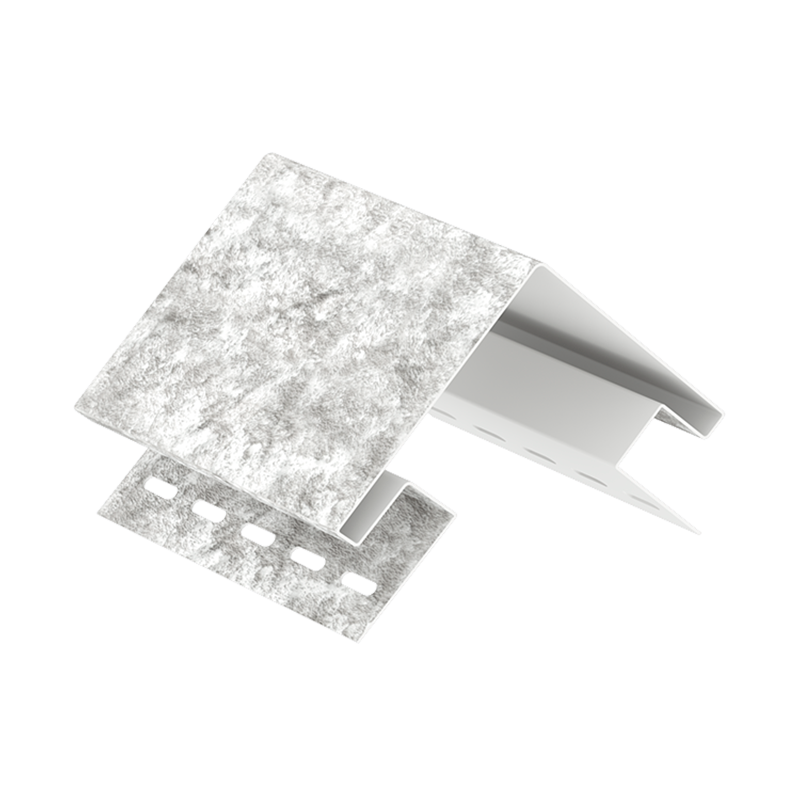 Внешний угол из винила для фасадных панелей Ю-Пласт StoneHouse Кварцит Светло-серый длиной 3050 мм. Используется для декоративного оформления и защиты наружных углов фасада. Скрывает и укрепляет места угловых стыков фасадных панелей.