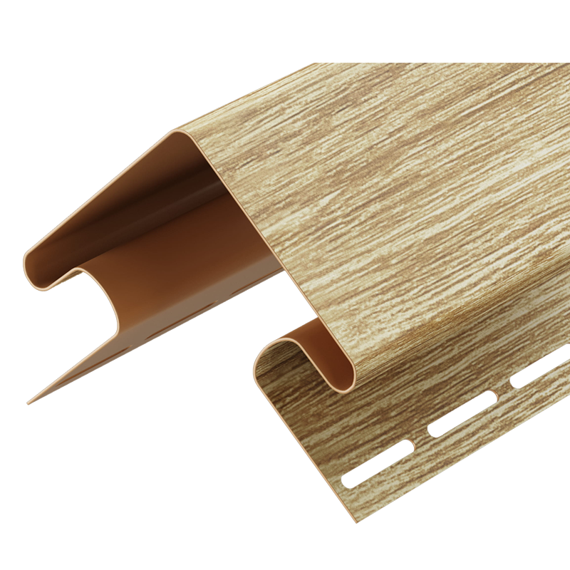 Виниловый внешний угол под дерево Docke серии LUX длиной 3 м, цвет Рябина. Используется для оформления наружных углов фасада. Скрывает и укрепляет места угловых стыков сайдинга, защищает от проникновения влаги.