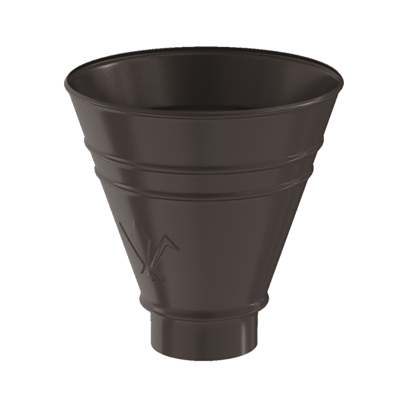 Воронка водосборная D100 мм RR32 Темно-коричневая с покрытием Полиуретан (PUR) от производителя Аквасистем. Элемент водосточной системы, применяется для сбора воды со сложных форм крыш, фальцевых кровель, в тех случаях, когда сток не организован посредством желоба.