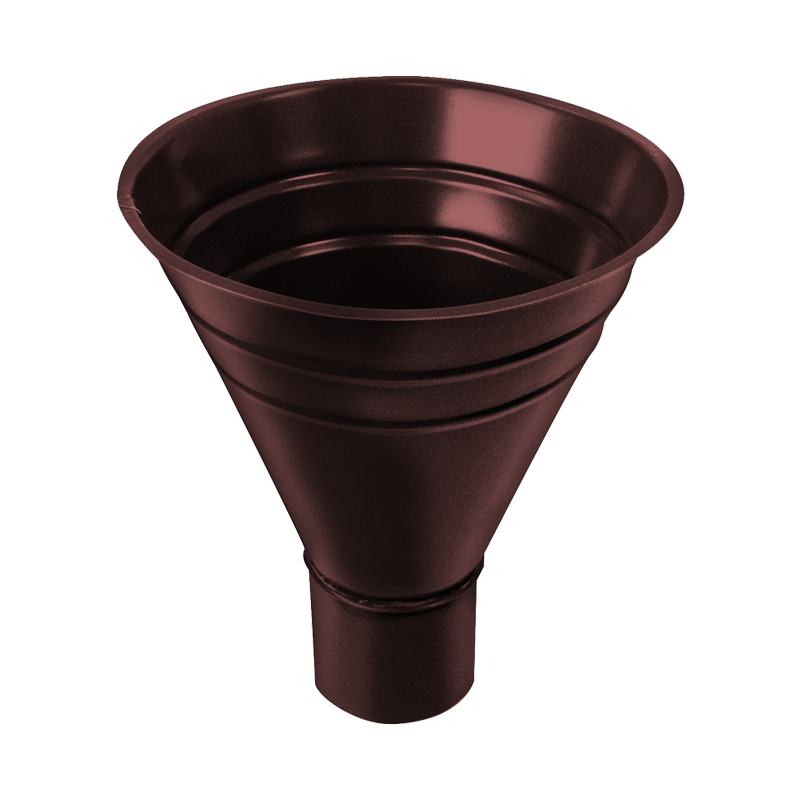 Воронка водосборная D150/100 мм коричневая RAL8017 с покрытием Granite Double от Гранд Лайн. Элемент водосточной системы, применяется для сбора воды со сложных форм крыш, фальцевых кровель, в тех случаях, когда сток не организован посредством желоба.