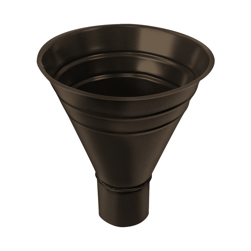 Воронка водосборная D150/100 мм коричневая RR32 с покрытием Granite Double от Гранд Лайн. Элемент водосточной системы, применяется для сбора воды со сложных форм крыш, фальцевых кровель, в тех случаях, когда сток не организован посредством желоба.