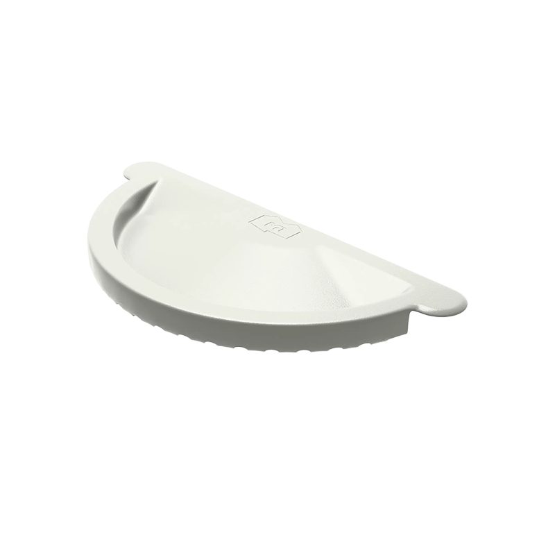 Заглушка желоба D125 мм белая RAL9010 с покрытием Пластизол серии МП Престиж от Металл Профиль. Предназначена для закрытия торцов водосточных желобов.