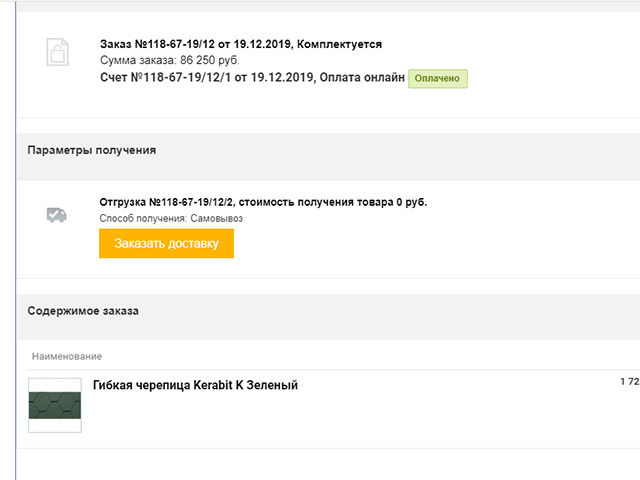 На странице заказа перейдите к секции «Параметры получения» и нажмите «Заказать доставку». Ваш запрос будет отправлен менеджеру, который свяжется с вами для уточнения деталей.